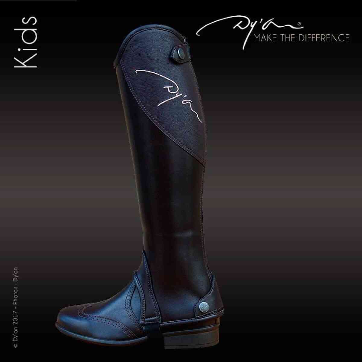 Legg chaps til barn med YKK glidelås bak og stilig Dyón logo. Innvendig panel i ekte lær og utvendige panel i elastisk syntetisk lær, microfiber lining.